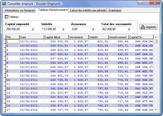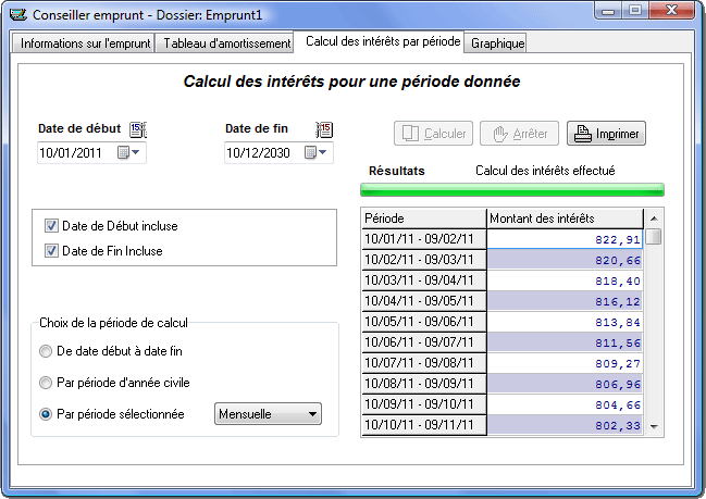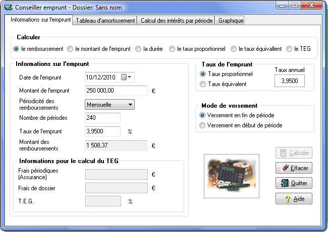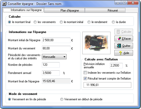 Captures d’écran CalcFinance